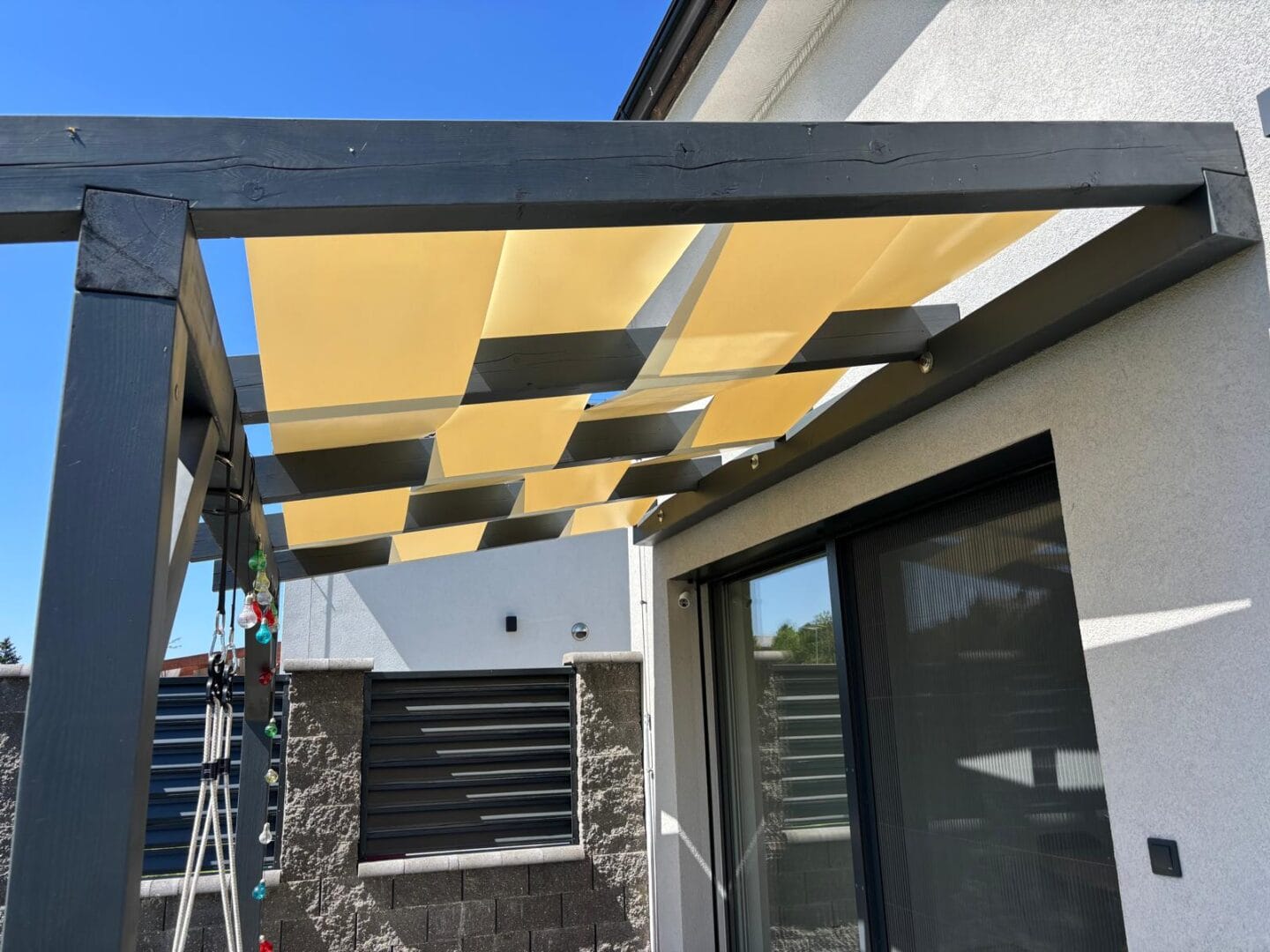 Plachty jsou vyrobeny z materiálů s vysokou odolností vůči UV záření a jsou navrženy tak, aby se dobře přizpůsobily architektuře pergoly nebo přístřešku